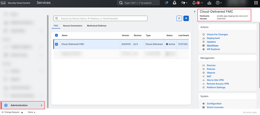 Choose Cloud-Delivered FMC to see the cloud-delivered Firewall Management Center details on the right pane.