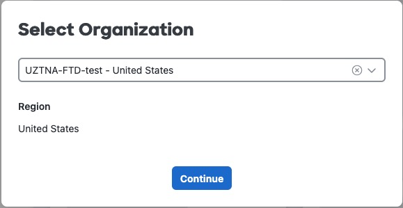 When prompted, select your organization from the drop-down list and click Continue.