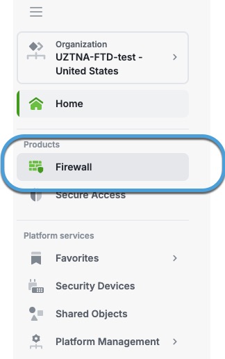Select an organization that has both Secure Access and Secure Firewall micro applications configured.