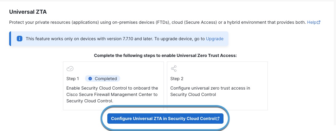 Click Configure Universal ZTA in Security Cloud Control.